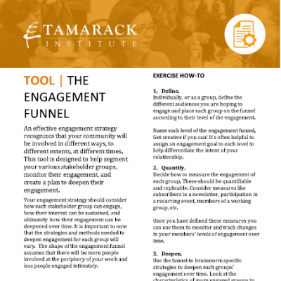 One of the fundamental principles of numerous community development approaches, including the Connected Community Approach, is to start where people are. People engage differently at different times. This tool can help you to identify and monitor the stages of engagement for your particular group.
